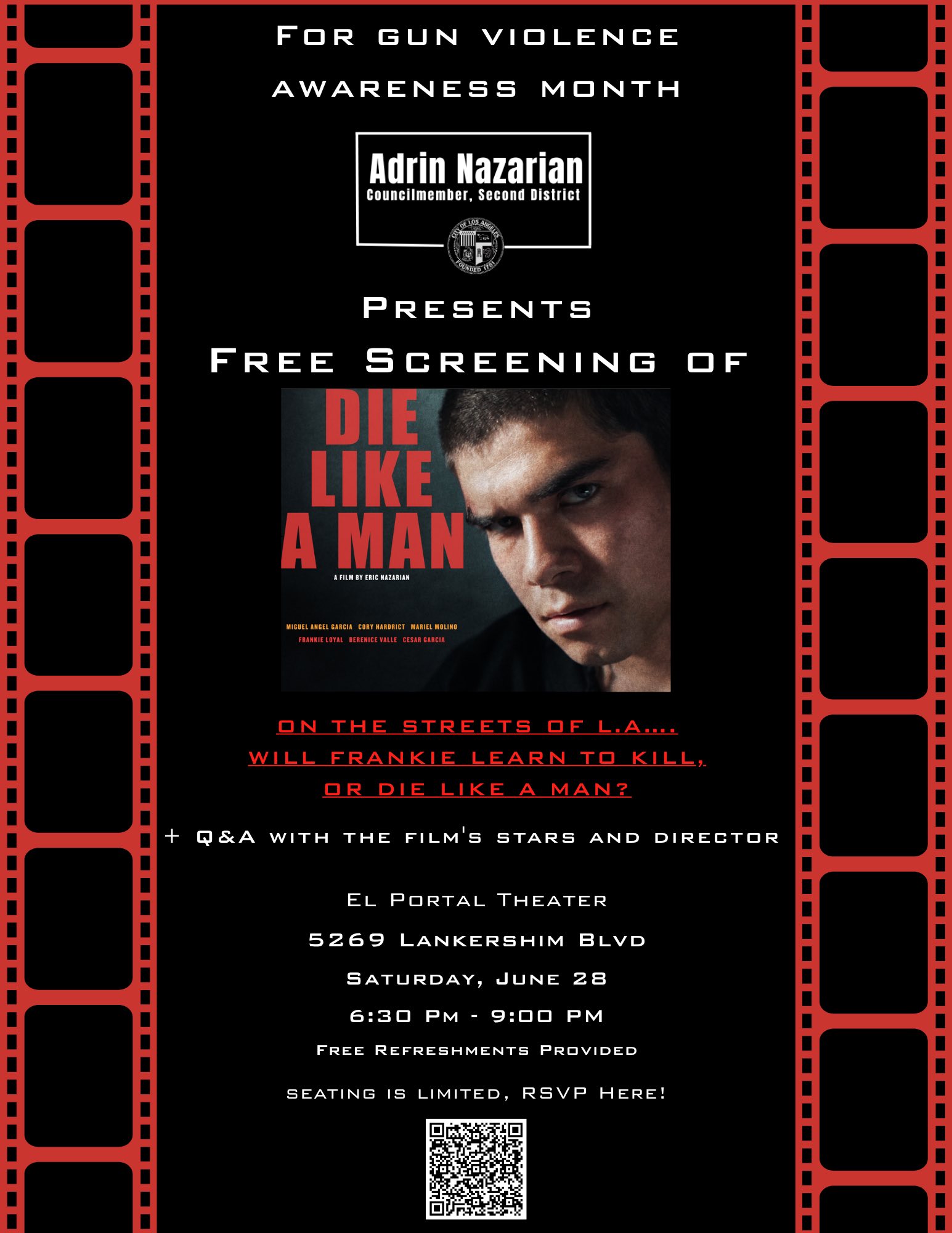 Please join us for free screenings of “Die Like a Man;” a powerful exploration of the root causes of gun violence, and how it affects Los Angeles youth.