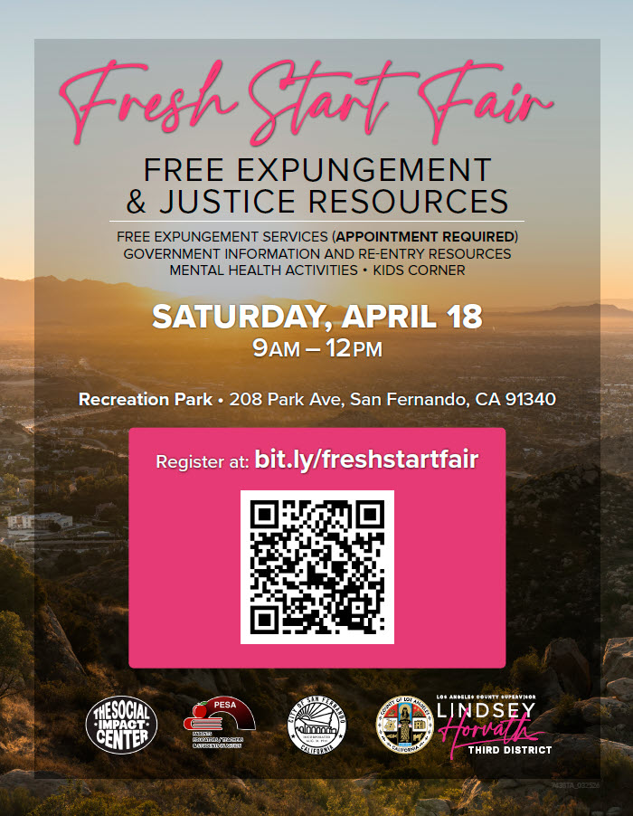 The office of Supervisor Lindsey Horvath,  announces the Free Start Fair, where our team will offer free expungement services, justice resources, and government information. The fair will be on April 18, 2026, from 9 am to 12 p.m.
