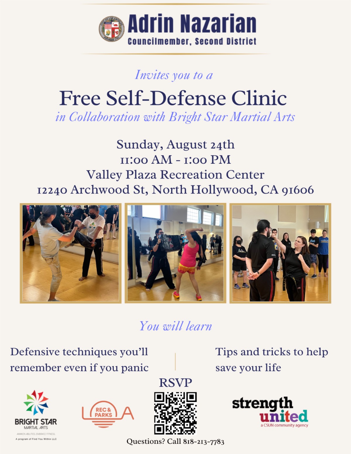Councilmember Nazarian invites you to a FREE self-defense clinic at Valley Plaza Recreation Center in North Hollywood.