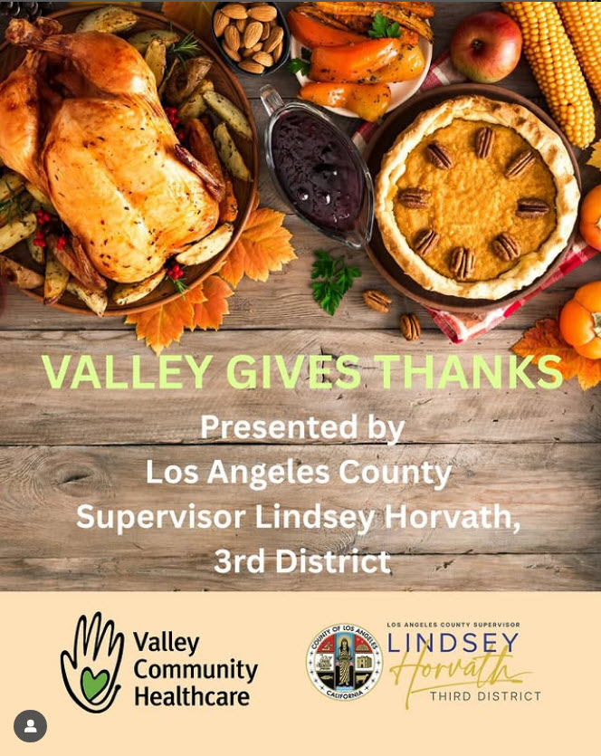 LA County Supervisor (3rd District), as the Presenting Sponsor of our Thanksgiving event for our patients, now renamed as Valley Gives Thanks – Presented by Los Angeles County Supervisor Lindsey Horvath, 3rd District. 🦃